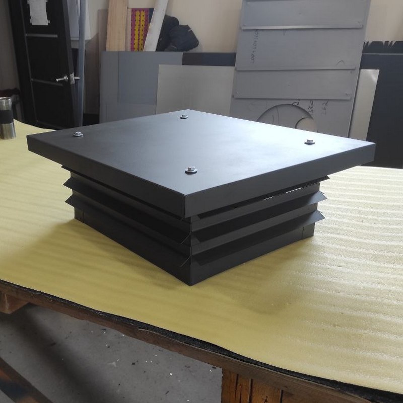Разборный зонт c жалюзи комплектуется 4-мя вертикальными панелями жалюзи, крышкой и комплектом крепежа для сборки. Изготовлен из оцинкованной стали толщиной 0.8-1мм, окрашен порошковой краской. Собирается по видеоинструкции за 3 минуты. Крепкий и долговечный. Доставка по Беларуси.